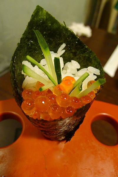 鮭魚卵手捲NT$80 ~ 真是好吃!